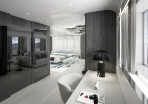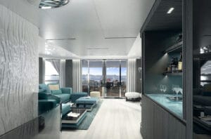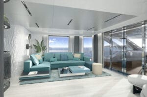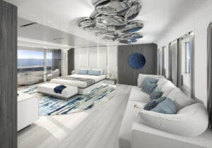 Ana güvertede bulunan sahibi süiti, özel balkon, jakuzi ve nefes kesici