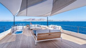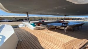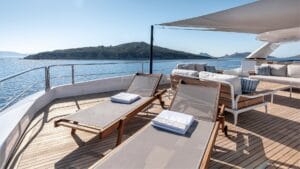 Hem dinlenmek hem de sevdiklerinizle keyifli vakit geçirmek için ideal olan yatımız, sizi huzur dolu bir tatile davet ediyor. Şıklığın ve fonksiyonelliğin ön planda tutulduğu geniş oturma grupları ve güneşlenme alanlarıyla donatılan bu tekne, masmavi sularda konforlu bir tatil arayanlar için kusursuz bir ortam sunuyor.