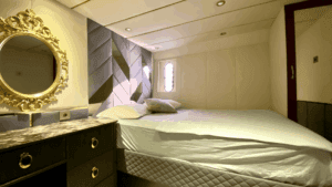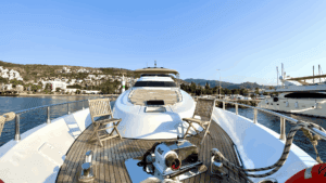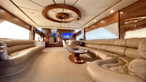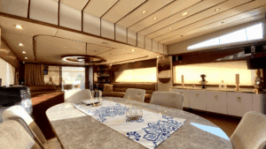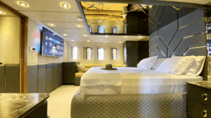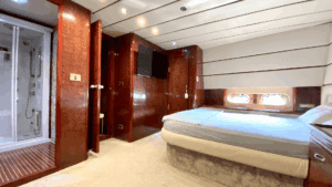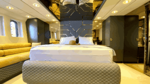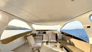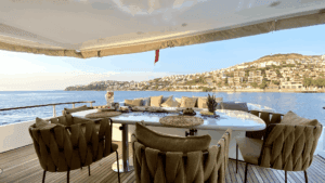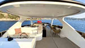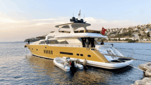 Altın Işıltısında Lüks Bir Deneyim Denizlerin üzerinde altın sarısı gövdesiyle parlayan, 32 metre uzunluğundaki ihtişamlı yapısıyla sadece bir ulaşım aracı değil, yüzen bir yaşam merkezi sunuyor. Geniş ve konforlu 5 adet double kabini ile misafirlerine maksimum rahatlık sağlayan bu özel yat, hem kalabalık aileler hem de seçkin arkadaş grupları için ideal bir tercih. Yatın en keyifli alanlarından biri olan Flybridge (üst güverte), özel barı ve geniş oturma alanlarıyla gün batımı kokteylleri için eşsiz bir atmosfer yaratıyor. İç mekanda ise geniş salon ve tam donanımlı mutfak, ev konforunu aratmıyor. Konforunuz için her detayın düşünüldüğü yatta; klima, bulaşık makinesi, çamaşır makinesi, derin dondurucular ve ızgara gibi olanaklar mevcut. Ayrıca denizin keyfini çıkarmanız için Zodiac bot da teknede yer almaktadır.Lüksü, estetiği ve üstün hizmet anlayışını bir araya getirerek unutulmaz bir mavi yolculuk vaat ediyor.