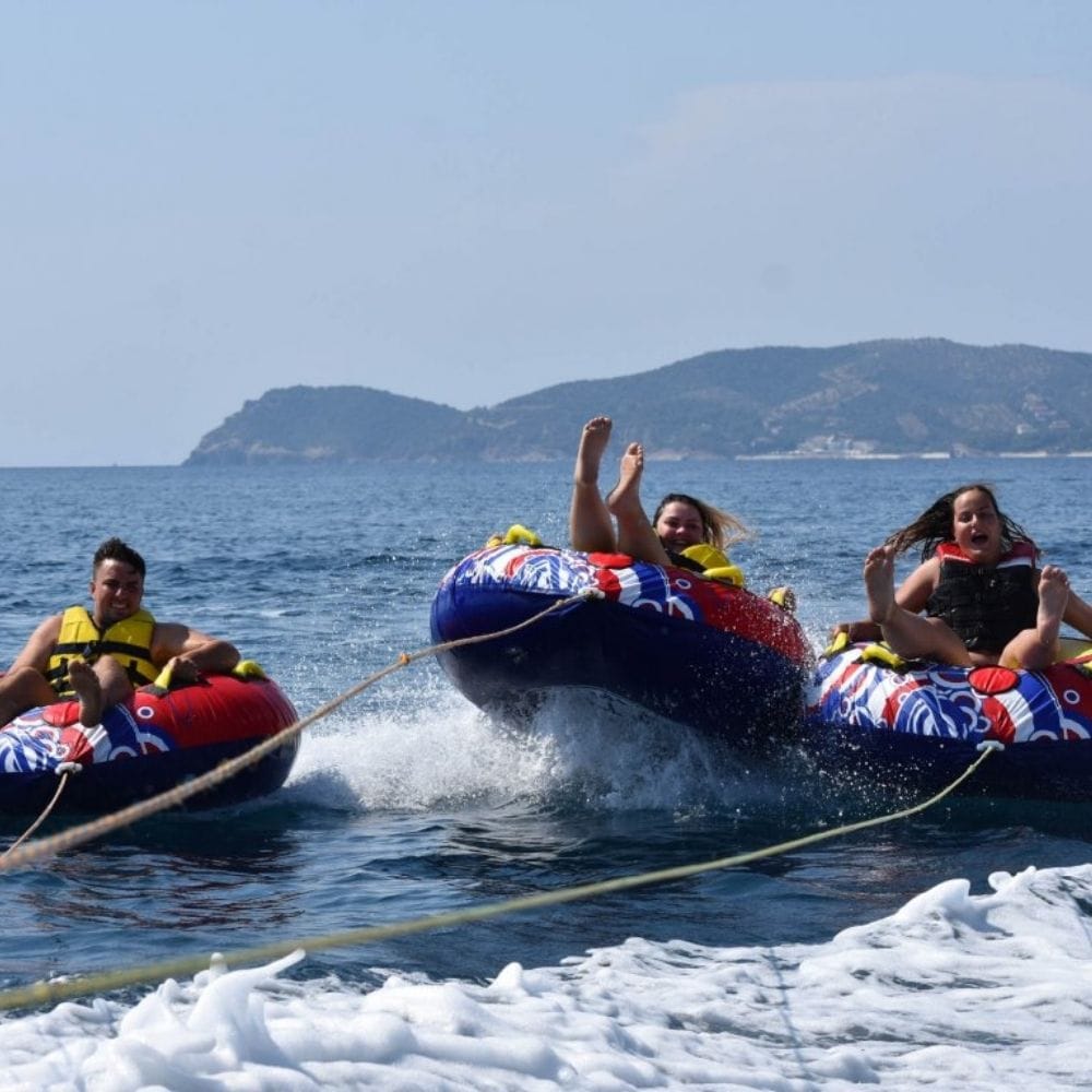 Wakeboard, Flyboard ve Su Kayağı ile suyun üzerindeki sınırlarınızı zorlarken; Banana Boat ve Ringo Ride ile grup halinde eğlenceyi zirveye taşıyacaksınız. Tüm ekipmanlarımız en üst segment ve premium standartlarda olup, profesyonel ekibimiz her an güvenliğiniz için yanınızdadır.